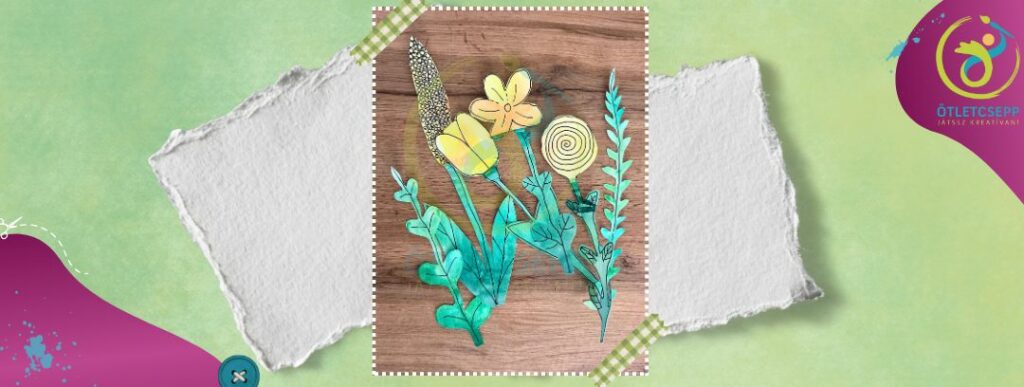 - nagyobbak először lefesthetik a lap felét zöldre, felét tetszőleges színre és száradás után ebből vágjátok ki a virágformákat