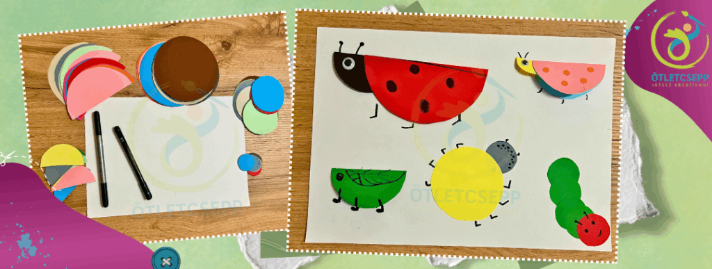 A napi ötleteken túl bogárkákat, rovarokat nagyon egyszerűen készíthettek különböző méretű színes körökből, félkörökből. Ezt kiegészíthetitek filctollal megrajzolt lábakkal, csápokkal, mintázattal. Használhattok mozgó műszemeket, zseníliadrótot is.