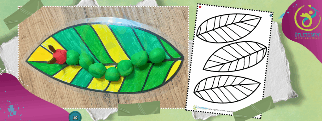 Gyurmagolyókból szintén készülhet telhetetlen hernyócska. Ehhez letölthető levélsablont készítettem: